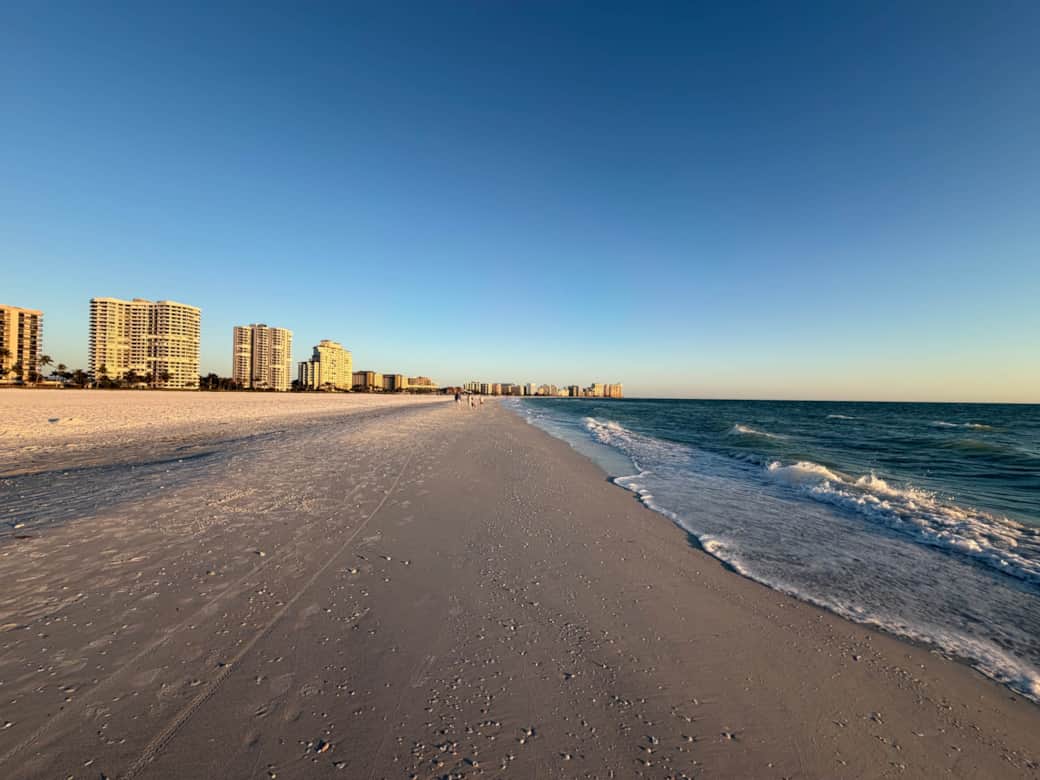 Tigertail Beach: One of the most popular spots on Marco Island, known for its unique lagoon and excellent shelling. It’s perfect for long walks, spotting wildlife, and finding shells. Pro tip: Bring water shoes for the lagoon crossing and go early for the best shelling!