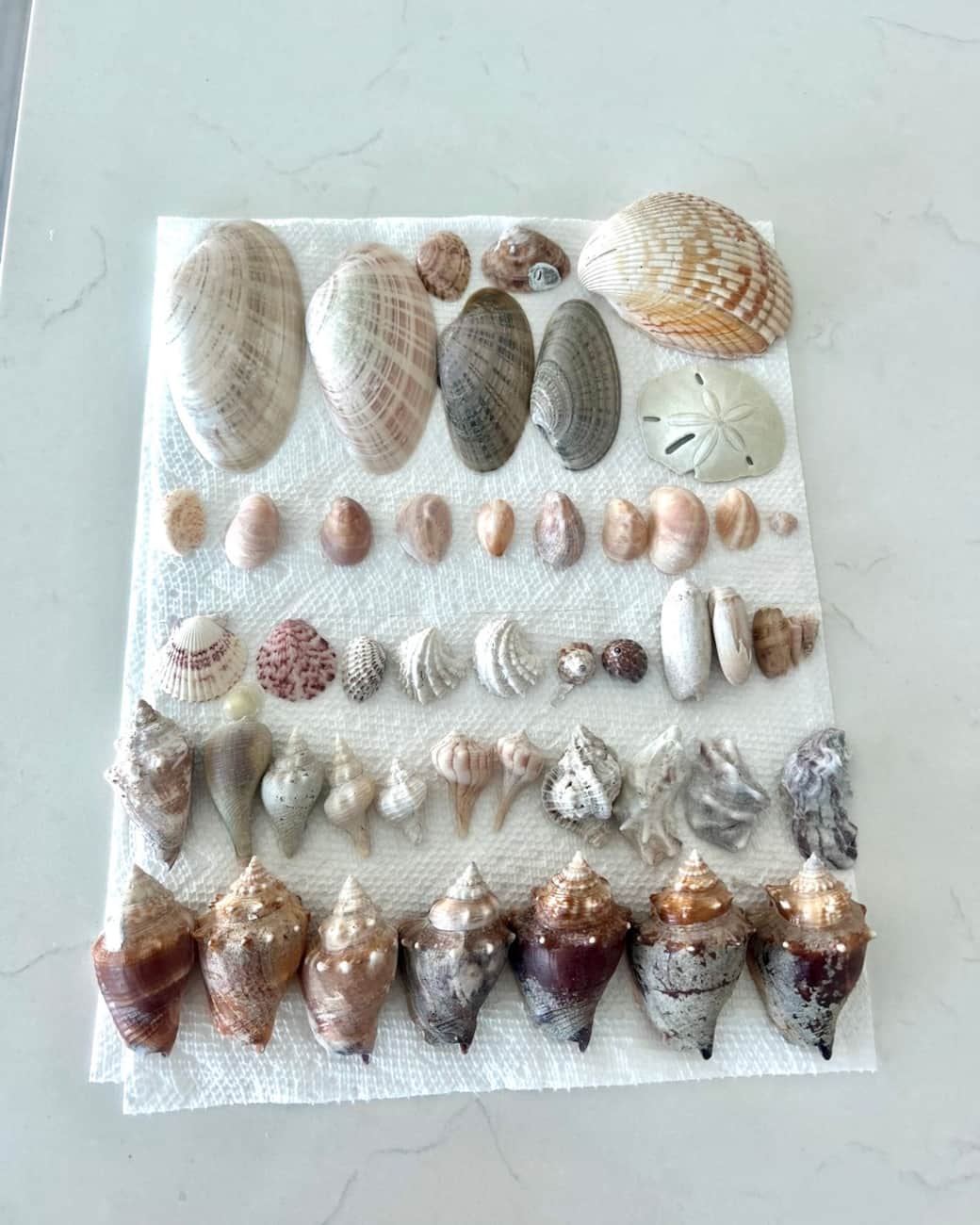 Pictured left: my daughter's shelling haul from April 2026